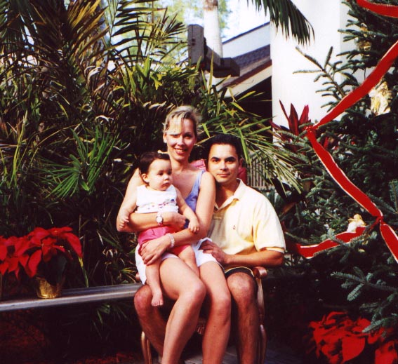 Posing with Mommy and Daddy by the Christmas tree